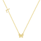 Express your unique style with the Flutter Away Necklace. This beautiful necklace features an initial charm to capture your spirit, plus a butterfly charm for a touch of whimsical fun. Wear it your way and flutter away in style!
