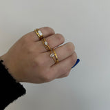 Make a statement with our After Hours Ring! This panelled band features a stunning cz stone, adding sparkle and style to any outfit. Plus, it's waterproof, perfect for all your adventures.